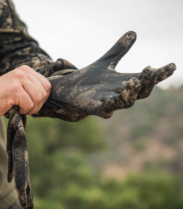 Los guantes antideslizantes para un manejo seguro del arma.