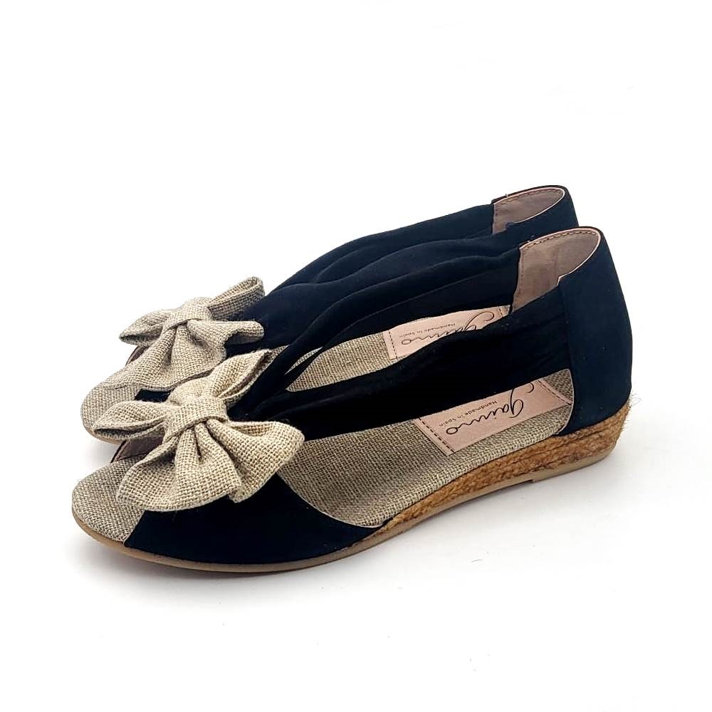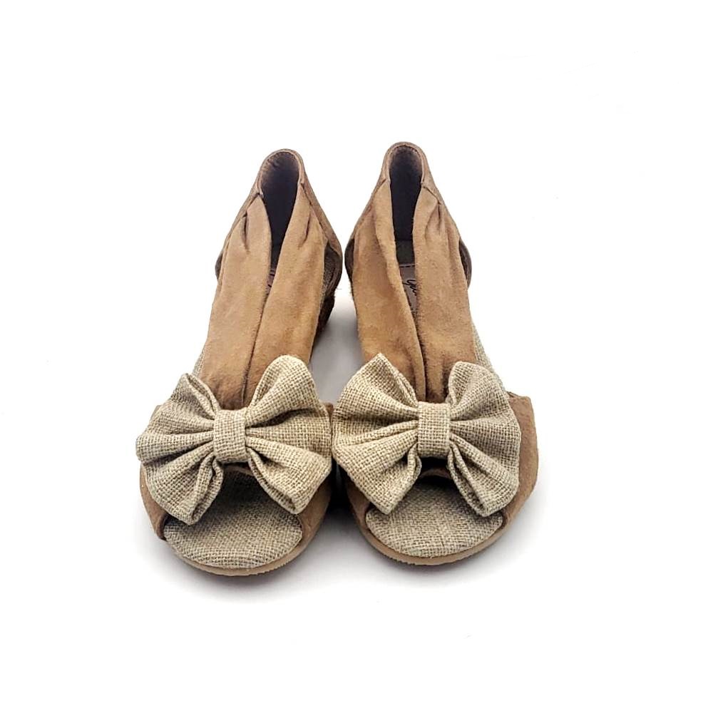 Sandalia tipo Alpargata con diseño con LAZO. En ante y lino  para adaptarse a todo tipo de empeines y para una perfecta sujeción y una mayor comodidad. Realizadas en 100% lino natural de primera calidad con acabado  en ante y diseño con LAZO. Los zapatos tipo alpargatas en linos están muy de moda esta temporada en todas las colecciones de las mamas. Son un básico renovado y totalmente actualizado para esta primavera-verano con diseño muy dulce CON lazo en la pala. Combinan con toda su ropa para ocasiones especiales o para el día a día por sus tonos linos arenas Son un modelo muy dulce.