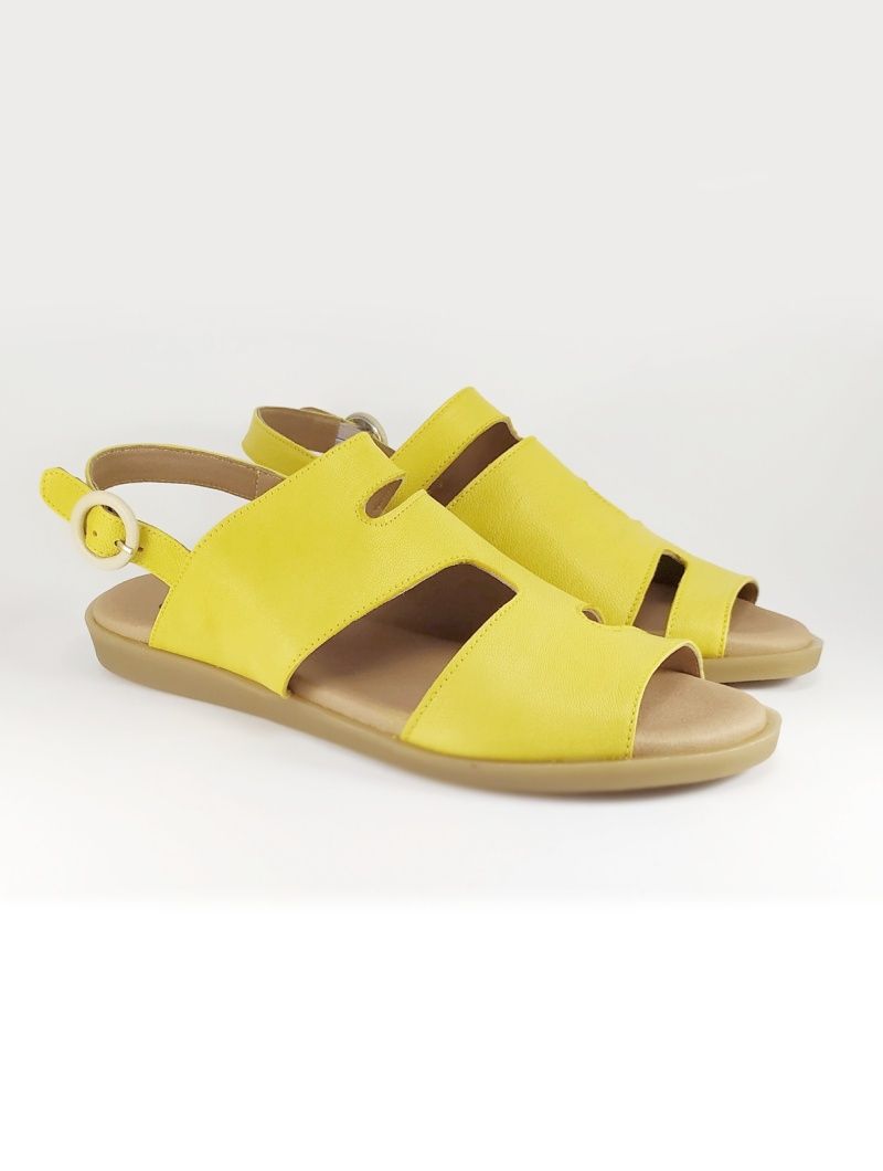 Cómodas sandalias de piel sin cromo en color lima (amarillo verdoso) con plantilla antifatiga, ajuste con hebilla y suela superflexible de 2cm en talón y 1cm en metatarso