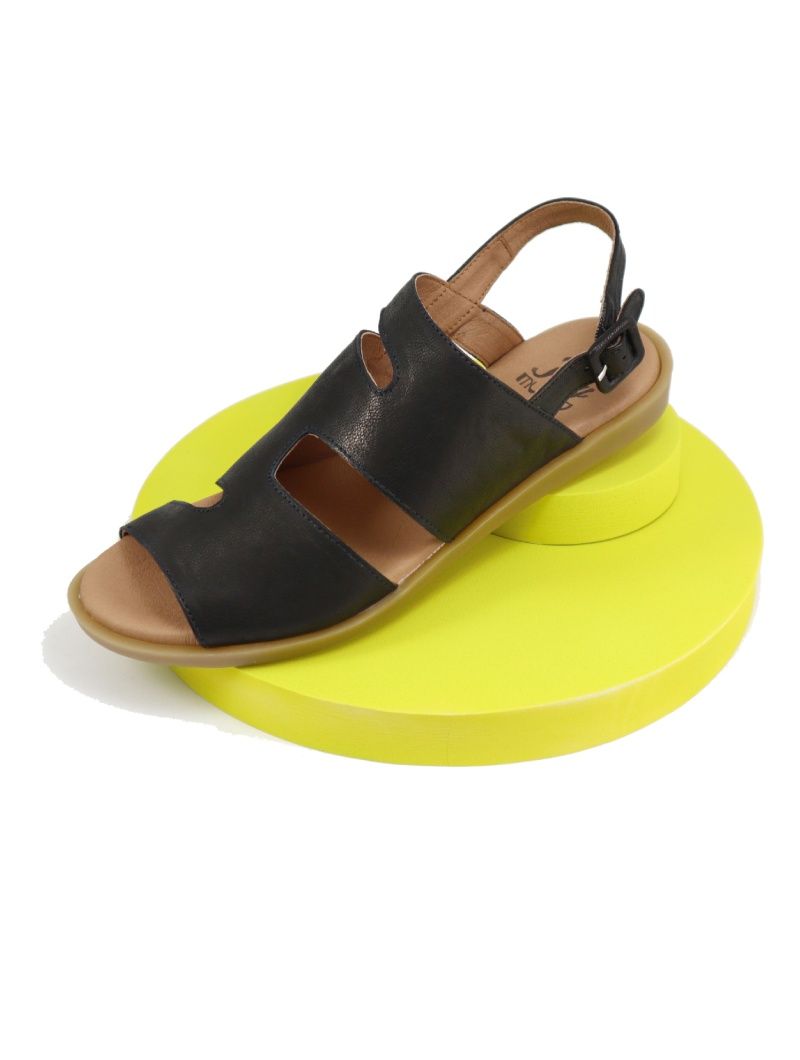 Cómodas sandalias de piel sin cromo en color negro con plantilla antifatiga, ajuste con hebilla y suela superflexible de 2cm en talón y 1cm en metatarso