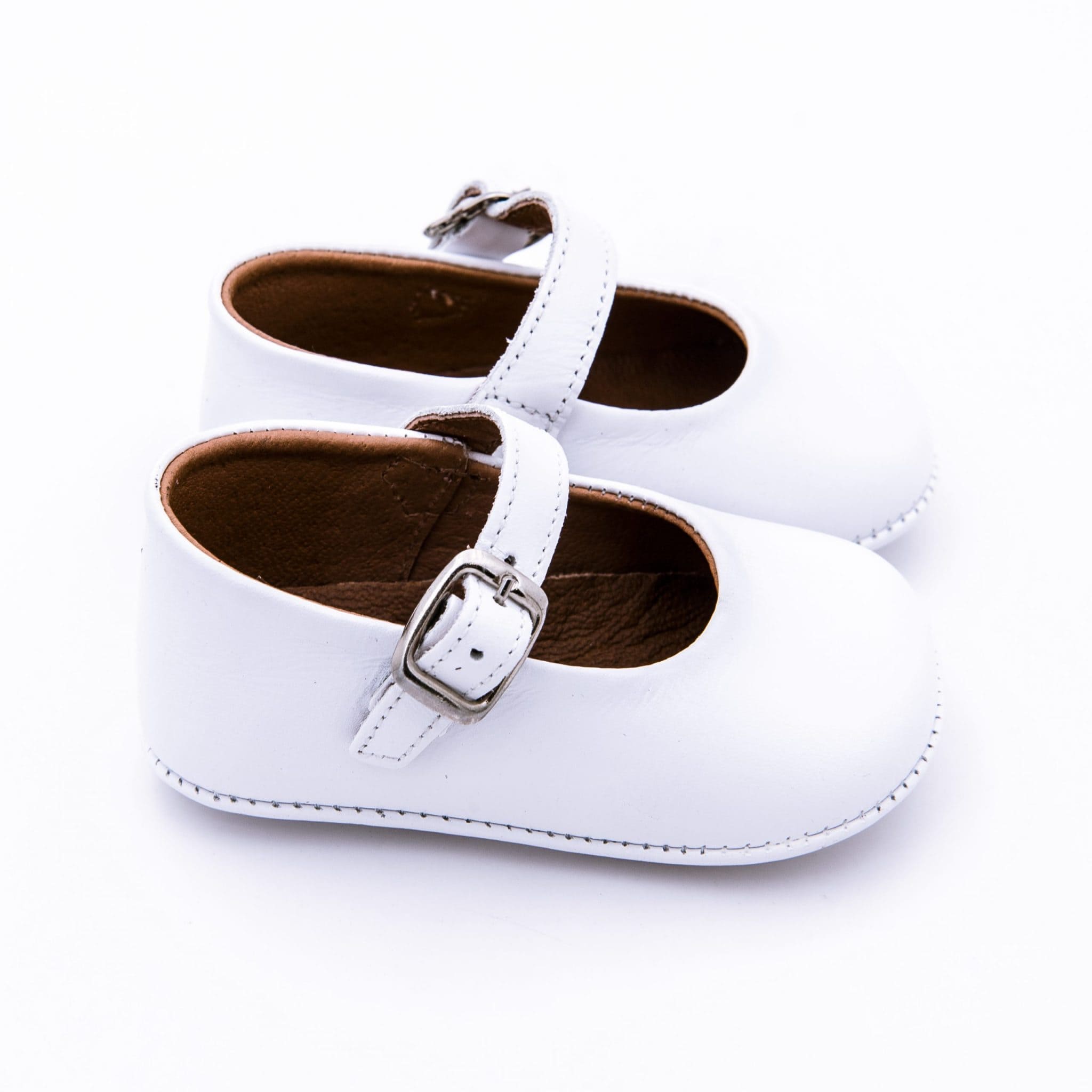 Badana tipo Mercedita clásica para bebés y pre-andantes con festón con cierre con hebilla en piel lisa. Realizada en 100% piel napa natural suave, con acabados de primera calidad. Un clásico y básico diferente y muy elegante, con la comodidad del cierre de hebilla. Combina con toda su ropita más dulce en cualquier estación.