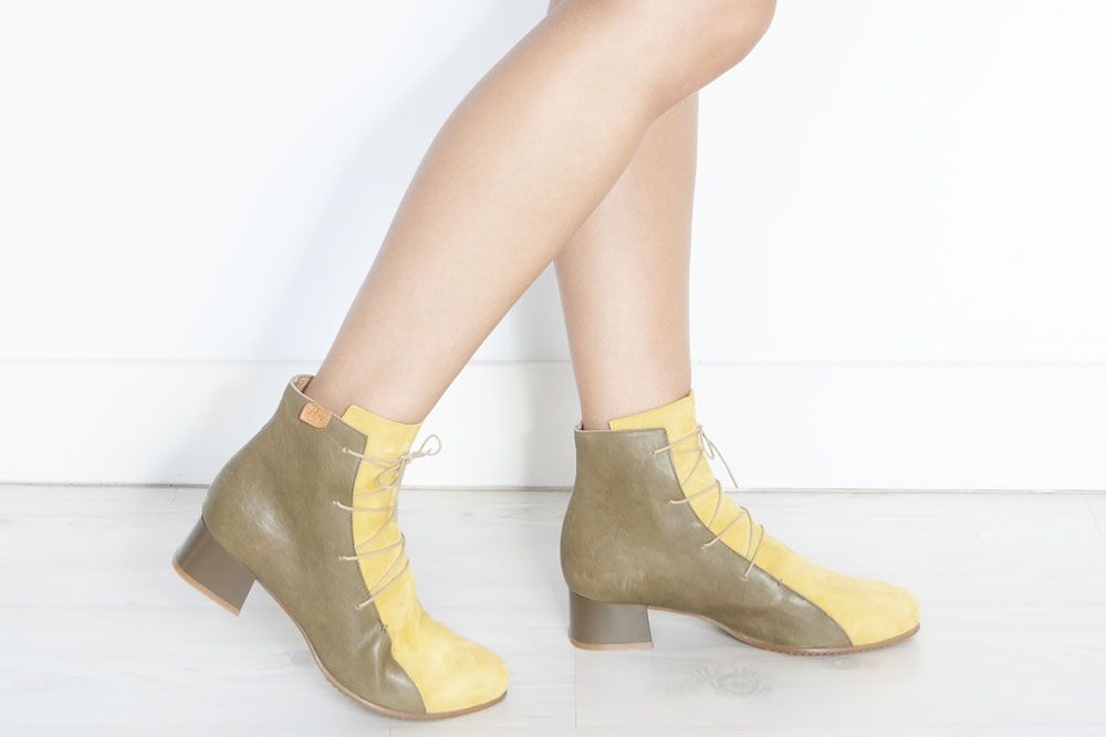 Zapato abotinado de piel sin cromo. Forro de piel ecológica libre de cromo. Lámina extra antifatiga (no extraíble)