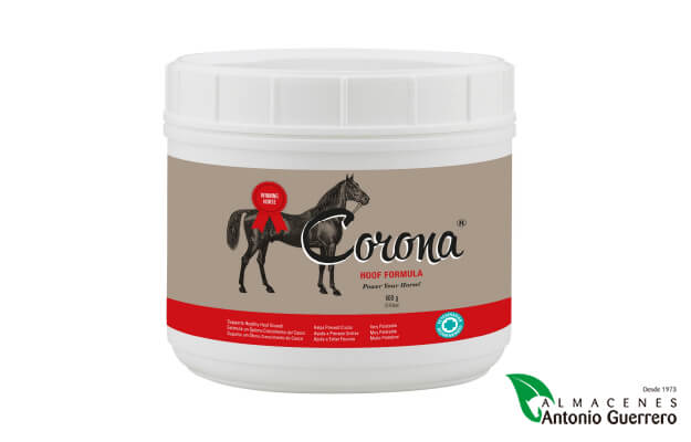 La biotina Corona estimula el óptimo crecimiento del casco. También favorece el crecimiento de unos cascos fuertes, resistentes y de buena salud. La biotina Corona previene y recupera cascos resecos, agrietados, frágiles, lesionados, con cuartos, etc.